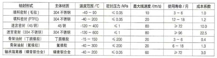 填料密封、迷宮密封、骨架油封、軸承隔離器 4種軸承箱密封形式都較為常用,也各有優(yōu)缺點,應(yīng)用場合各不相同,下面通過數(shù)據(jù)加以比較和分析。